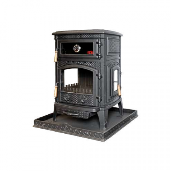 Three-sided glass, 100% cast iron combustion chamber resistant to 1500°C - ceramic glass with 300°C temperature indicator - tempered furnace glass - heat-resistant industrial paint - three-point airflow system - double-layer furnace with thermostat and steam/odor extraction - ash removal bearing mechanism