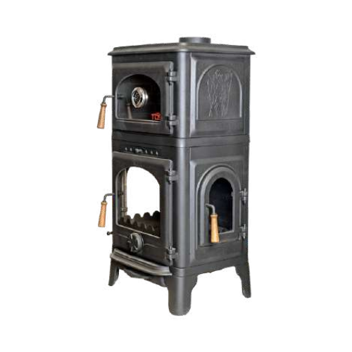 Трехстороннее остекление, камера сгорания из 100% чугуна, устойчивая к температуре до 1500°C, керамическое стекло, термостойкая промышленная краска, трехточечная система циркуляции воздуха, механизм удаления золы, двухслойная печь с термостатом и системой удаления запахов паром.