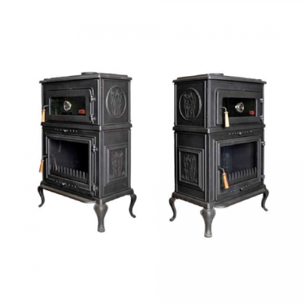 Single-sided glass 100% cast iron combustion chamber resistant to 1500°C - ceramic glass Heat-resistant industrial paint Three-point airflow system Ash removal bed mechanism Double-layer oven with thermostat and steam odor extraction