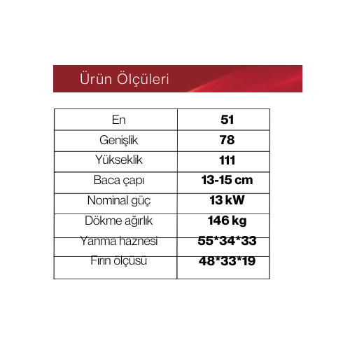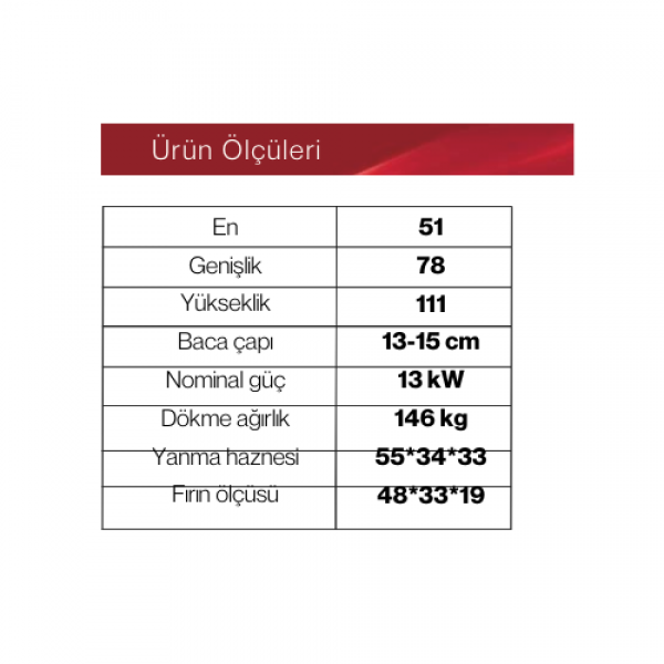 Одностороннее стекло, камера сгорания из 100% чугуна, устойчивая к температуре до 1500°C, керамическое стекло, термостойкая промышленная краска, трехточечная система циркуляции воздуха, механизм удаления золы, двухслойная печь с термостатом и системой удаления запахов паром.