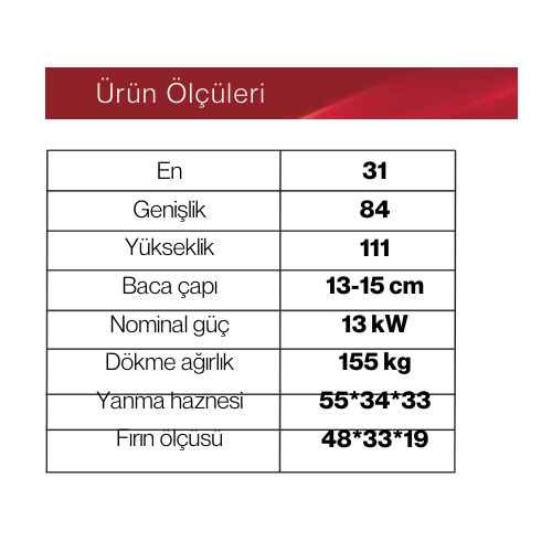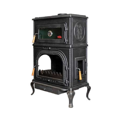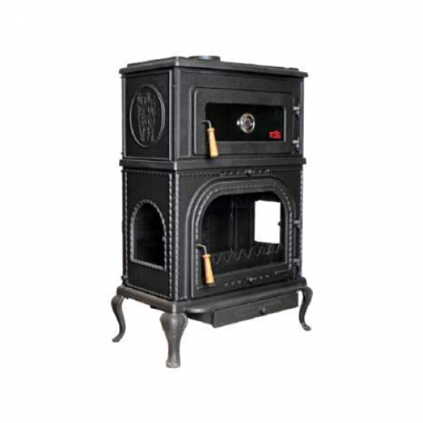 Three-sided glass, 100% cast iron combustion chamber resistant to 1500°C - ceramic glass, heat-resistant industrial paint, three-point airflow system, ash removal bed mechanism, double-layer oven with thermostat and steam odor extraction.