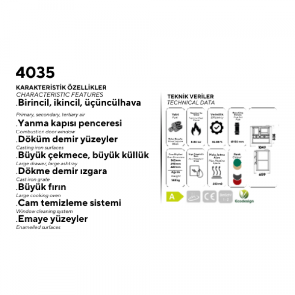 HOŞSEVEN 4035 CAST IRON FIREPLACE STOVE