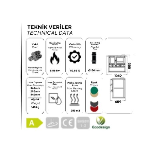 HOŞSEVEN 4035 WOOD FIRED STOVE WITH OVEN