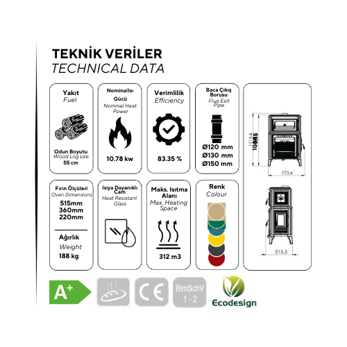 HOŞSEVEN 8020 CK CAST IRON FIREPLACE STOVE